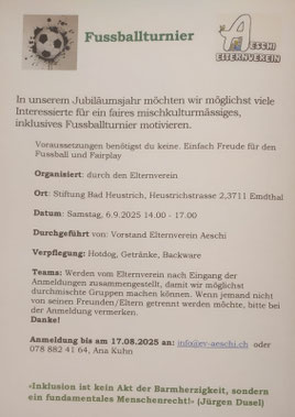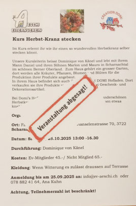 Im 2025 feiern wir 35 Jahre Elternverein Aeschi sowie das 5jährige Jubiläum des neuen Spielgruppenraums mit der neuen Leitung: Dazu werden wir 35 kleinere und grössere Angebote lancieren, zum Beispiel einen Nothilfekurs, einen Kurs "Herbstdeko" stecken oder ein Frühlingsfest mit Kasperlitheater. So schauen wir zuversichtlich, gespannt und phantasievoll auf das neue Jahr.
